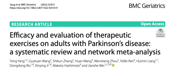 2022年10月21日,半岛电子_半岛电子(中国)生命科学学院脑科学研究所魏建设教授研究团队在国际医学顶级期刊BMC Geriatrics(一区Top,IF =4.070)发表了题为“Efficacy and evaluation of therapeutic exercises on adults with Parkinson’s disease:a systematic review and network meta-analysis”的最新研究论文,揭示了不同运动方式和类型在帕金森病运动和非运动症状疗效改善方面的综合评定效果。